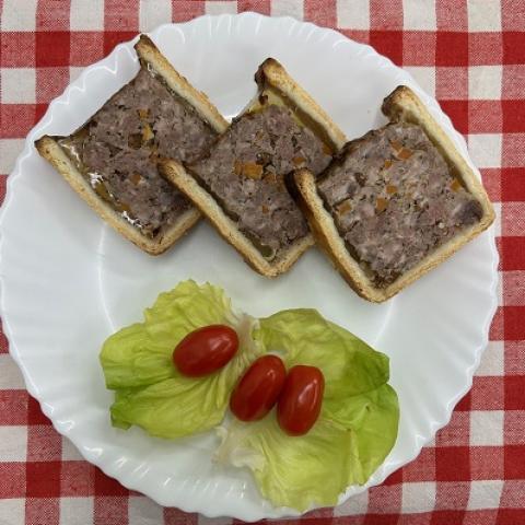 - des terrines : agneau, lapin, sanglier, chevreuil, cerf, pâté de campagne